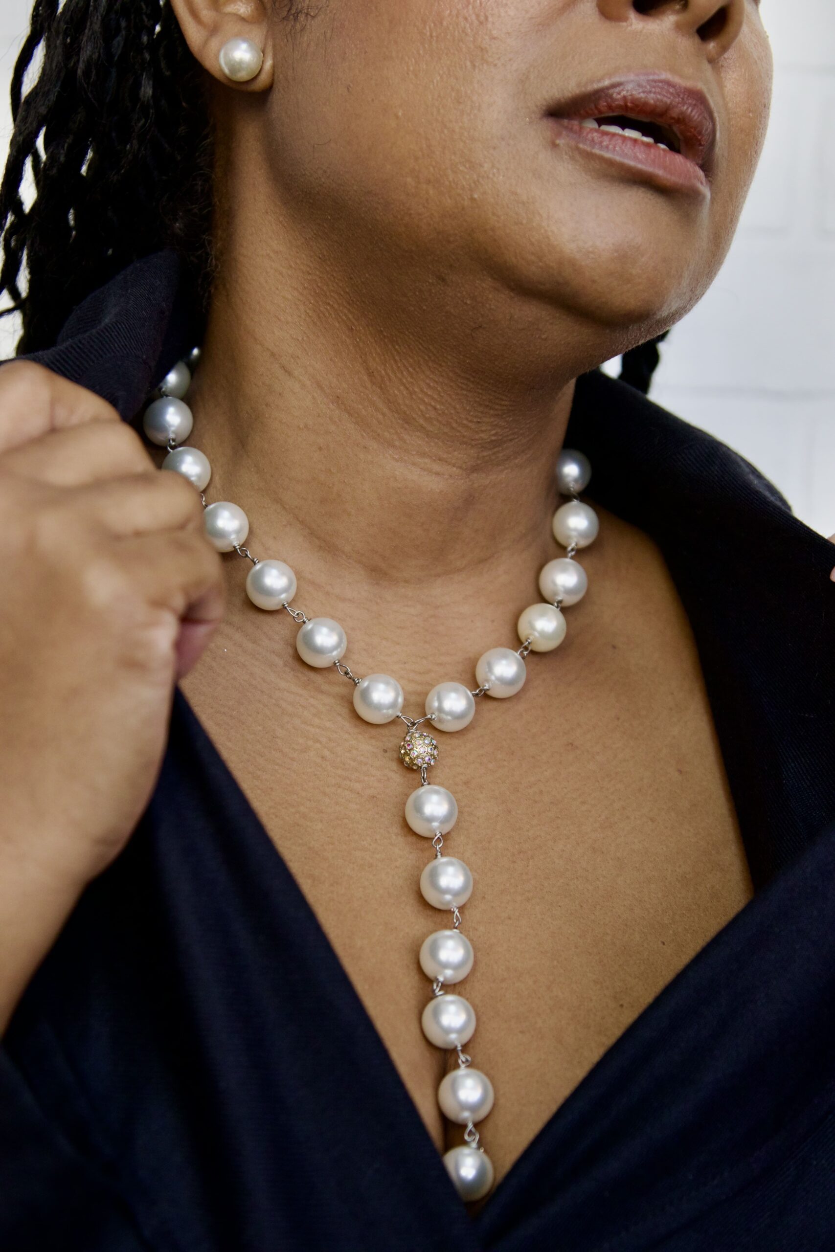 Make a statement with our fashion forward artisanal glass pearl necklace. Designed like a tie and perfect for styling with v-neck dresses or tops. Adds Sophisticated Elegance to your special occasions.